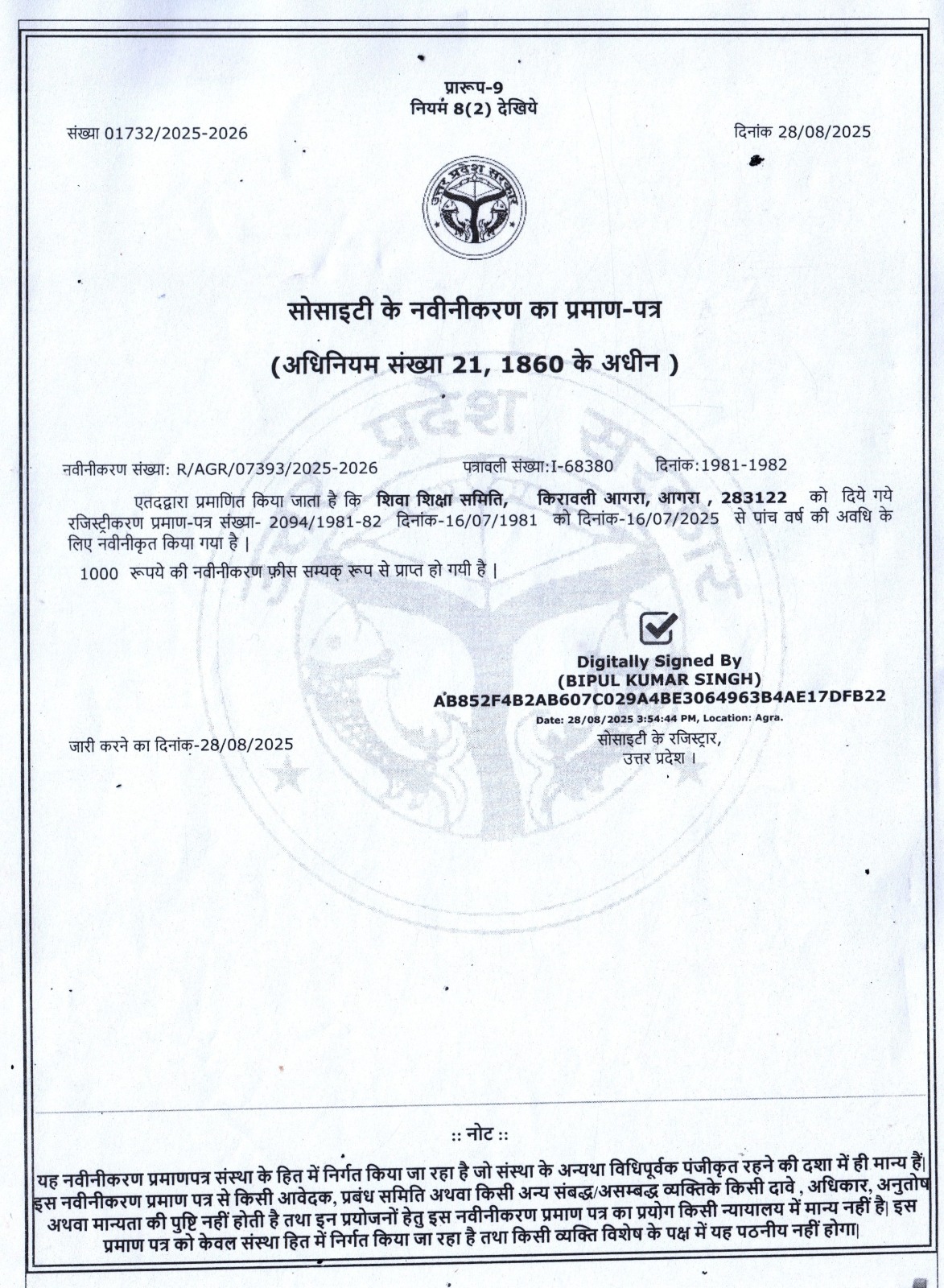 | COPIES OF RECOGNITION CERTIFICATE UNDER RTE ACT, 2009, AND IT'S RENEWAL IF APPLICABLE | View |